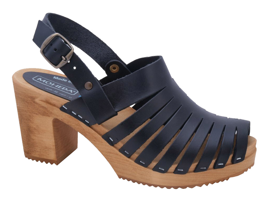 Linda är träsandalen som kombinerar klassisk skandinavisk design med modern elegans. Med en klossklack på 8,5 cm ger denna modell både höjd och stil, perfekt för dig som vill addera en sofistikerad touch till din look.