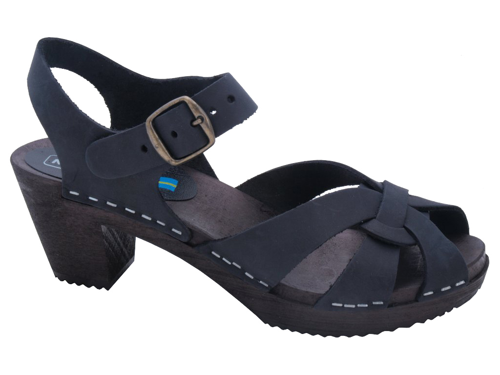 Sandy är träsandalen som fångar blicken med sitt flätade framparti i mjukt nubuk-läder. Den svartbetsade träbotten ger en distinkt och modern känsla, samtidigt som det robusta materialet garanterar hållbarhet och komfort. Spännet runt vristen gör att du kan anpassa passformen för maximal komfort, och klackhöjden på 6,5 cm ger den elegans och höjd du söker.