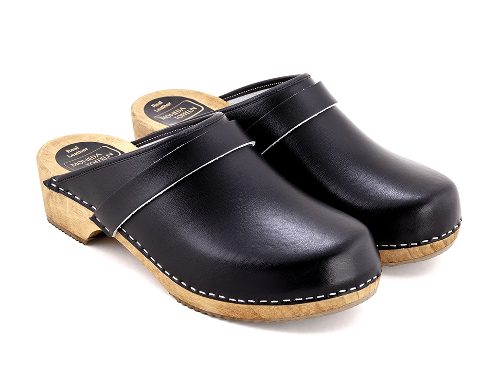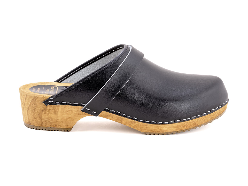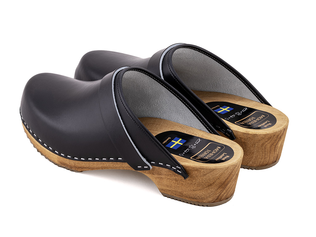 Den brunbetsade träbottnen ger en stabil grund, medan den slitstarka gummisulan säkerställer ett säkert grepp och långvarig användning. En sko som håller, oavsett var du går.